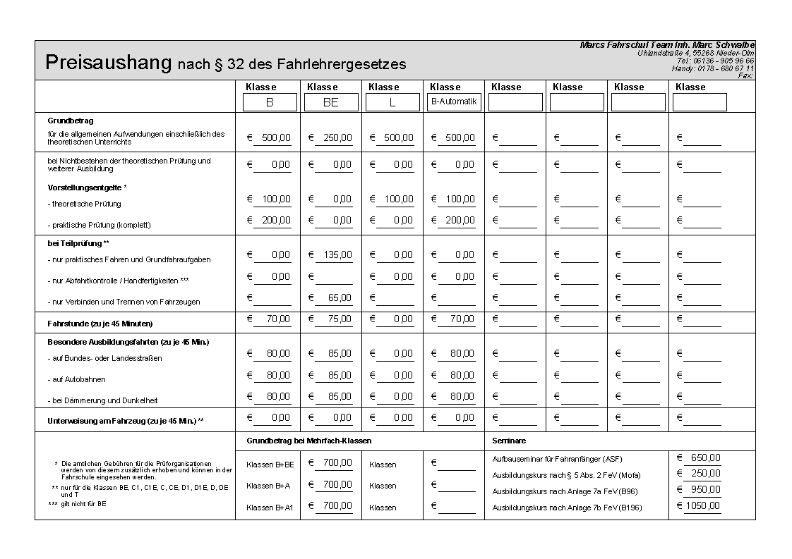 Preisliste